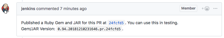 Our build system posts a comment back to the pull request with the published version to ensure new engineers discover this workflow immediately.